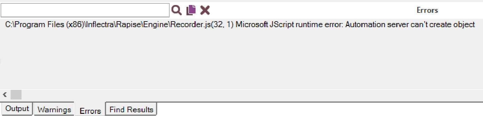 When you start recording you get the following error in the Errors tab: