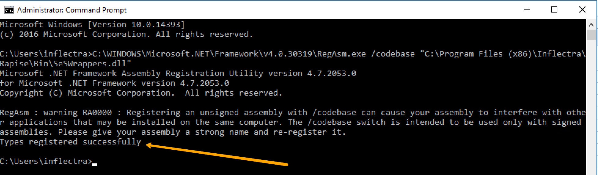 C:\WINDOWS\Microsoft.NET\Framework\v4.0.30319\RegAsm.exe /codebase "C:\Program Files (x86)\Inflectra\Rapise\Bin\SeSWrappers.dll"