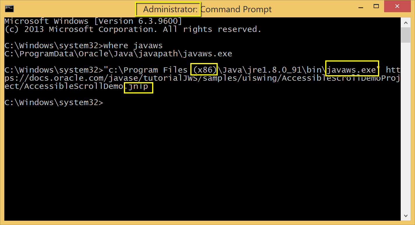 - Run application using <java_path>\bin\javaws.exe <jnlp_url> where: