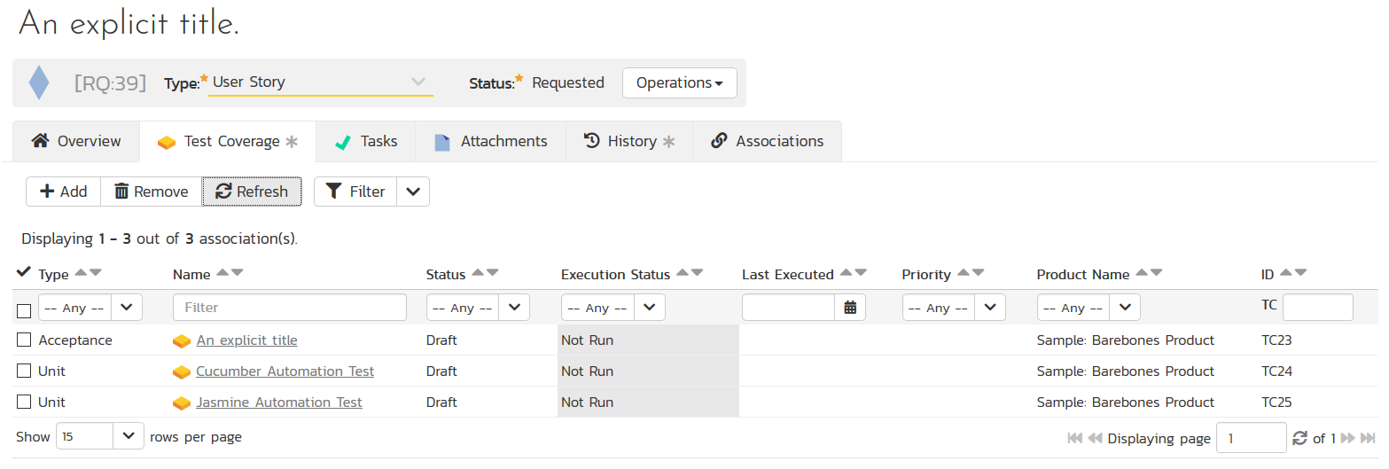 Then when you go back to the User Story and look at the Test Coverage tab, you will see: