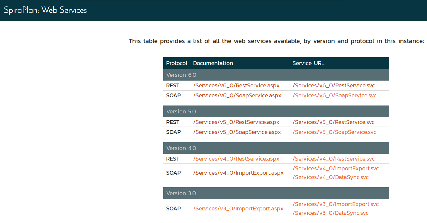 Firstly, the various Spira APIs is documented at this URL: http://api.inflectra.com/Spira/Services/