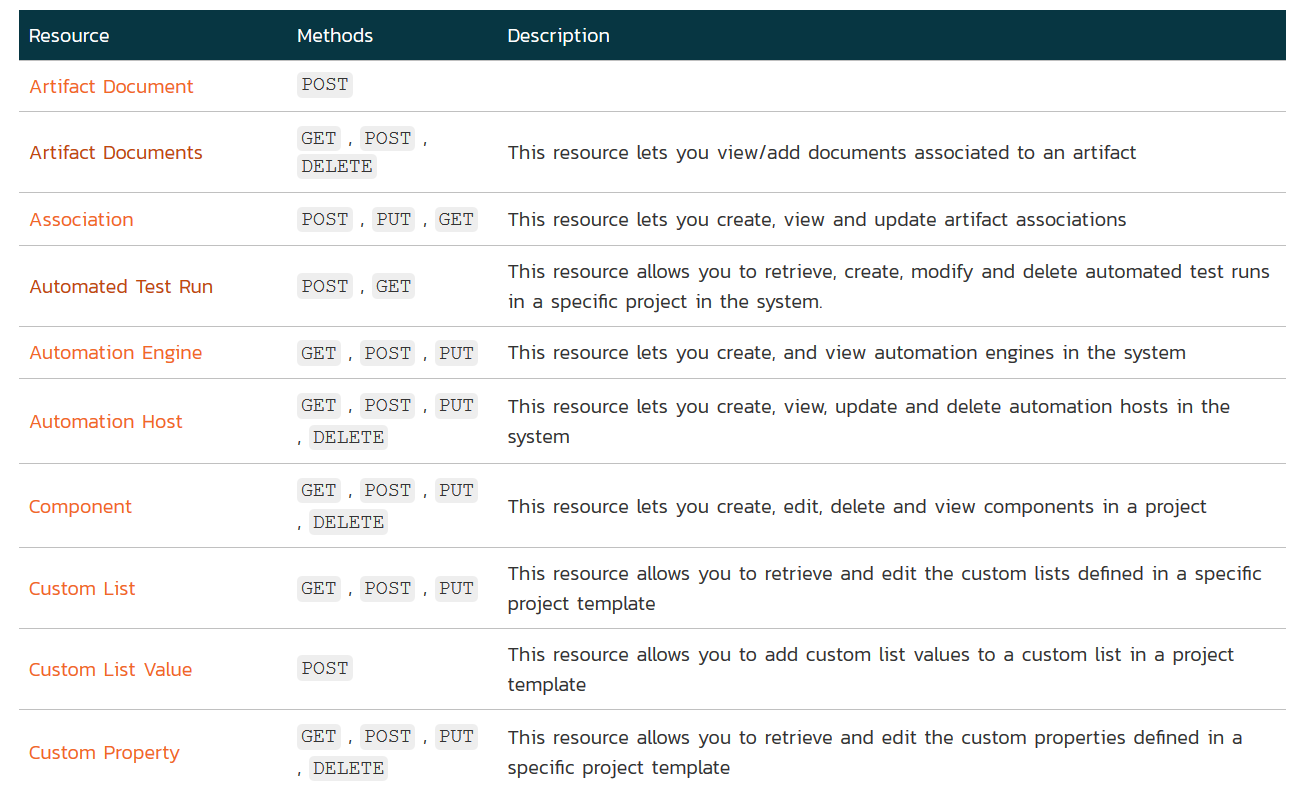 If you click on the Documentation link for the v6.0 REST API you will see the list of resources and methods: