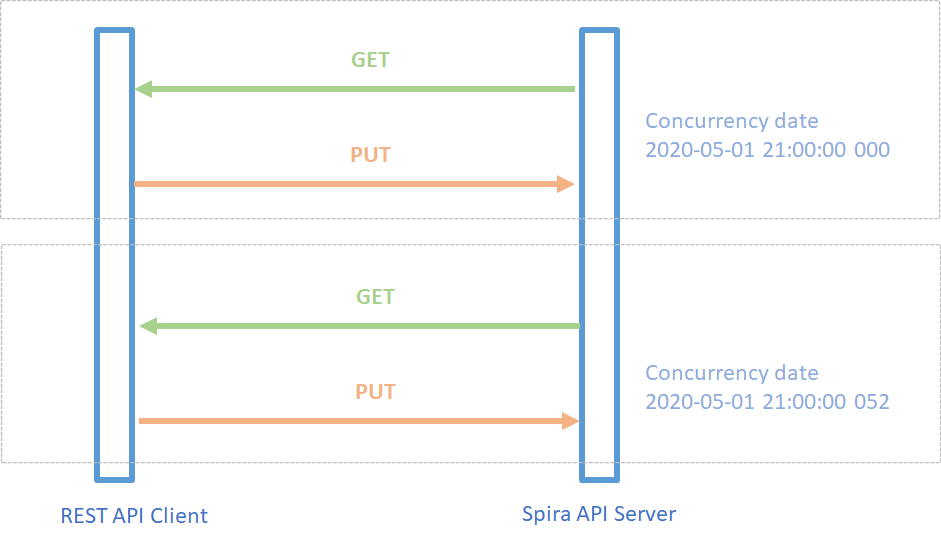 Spira works on the principle of optimistic concurrency so that each change made in Spira updates a special field called ConcurrencyDate. This is effectively the version number of the item being updated. Spira versions the entire record, so if you are going to update a Task (for example), you cannot just simply update a couple of the fields in isolation, you need to first get the latest version of the task object, make the changes to the values, and then send back the entire object.