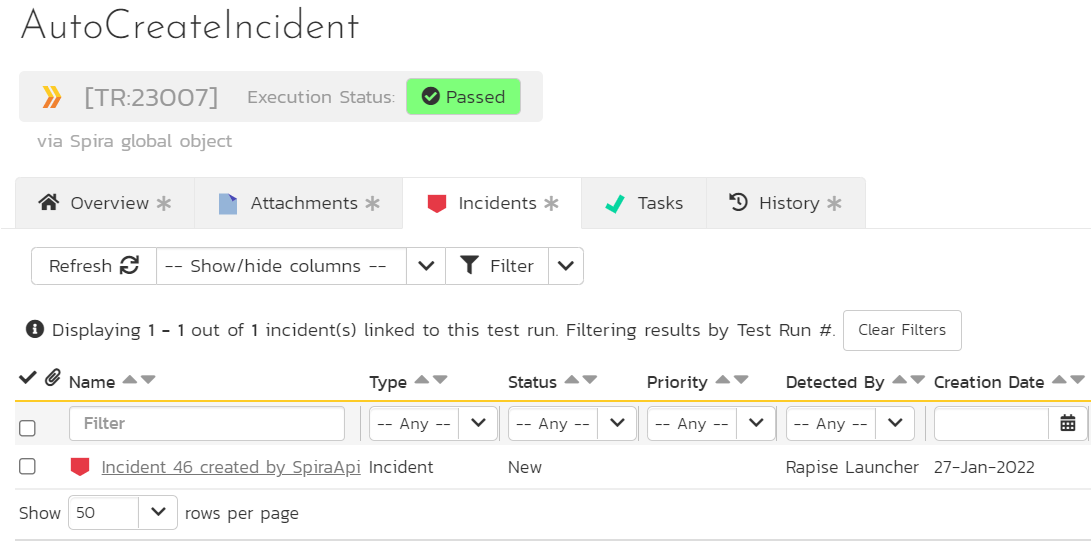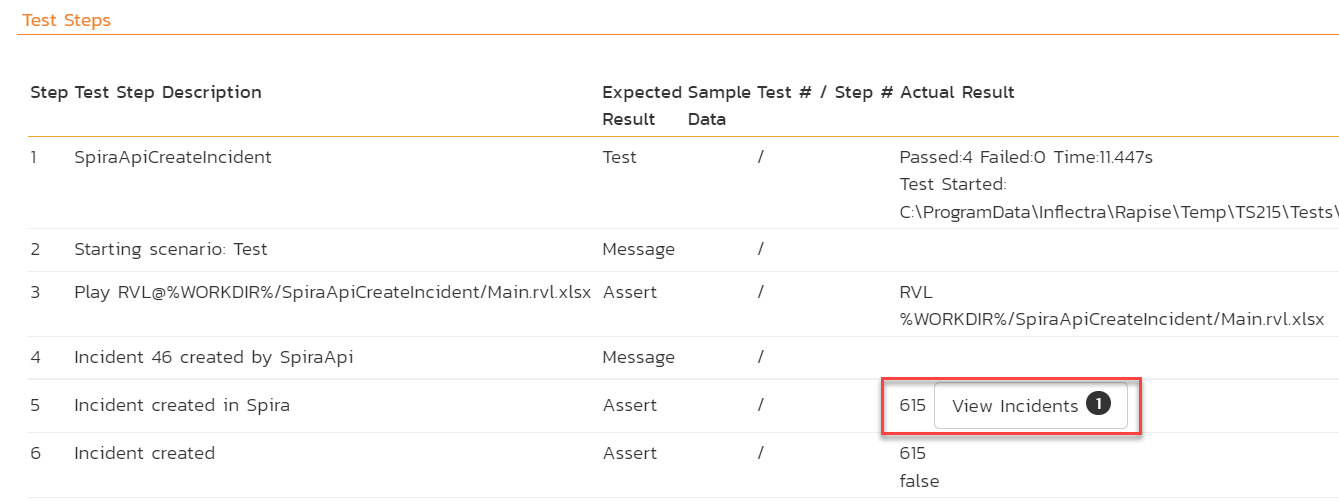 There is a new global object Spira added in Rapise 7.2. Using Spira.CreateIncident one may automatically log an incident into Spira during Rapise test playback. If an incident is created when the test is executed by RapiseLauncher - it is automatically linked to a test run step: