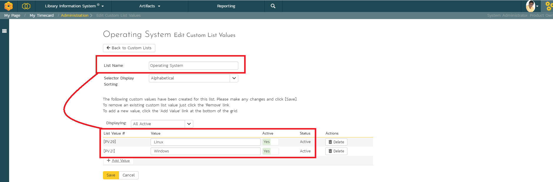 The data for this Operating System custom list has two values as shown in Figure 2 below.