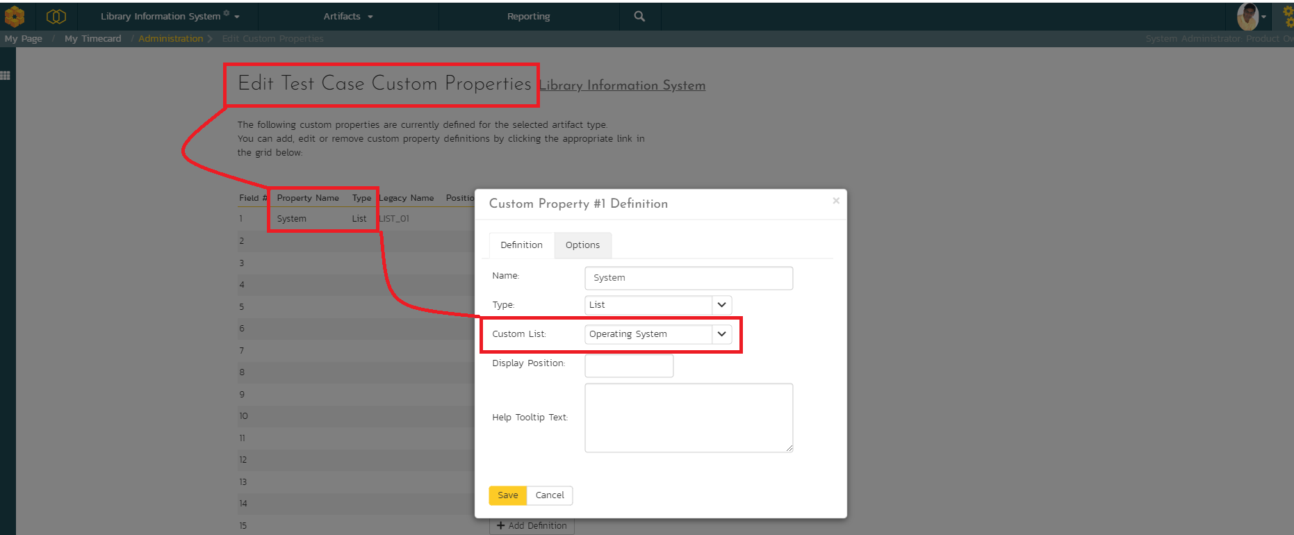 One of the pre-requisite for this to ensure that there is a custom list set up. For the purpose of this article, I have set up a Custom Property, called "System" on "Test Case" (Spira Artifact). This custom property is of the "List" type. The data for this list comes from the pre-existing Custom List, called "Operating System." This is shown in Figure 1 below. Please note that the "Single-Select" list option is used.
