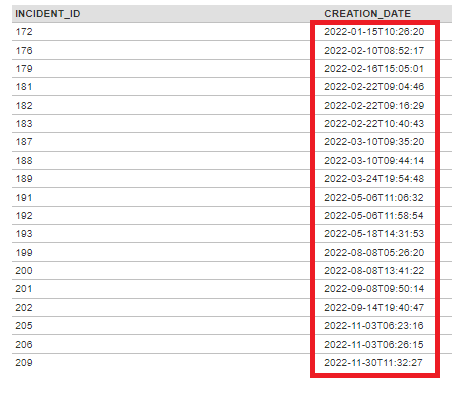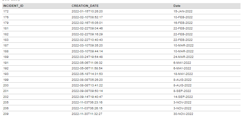 Here is the sample of the report output. The final column shows how the CREATION_DATE has been formatted.