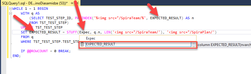 SET EXPECTED_RESULT = STUFF(EXPECTED_RESULT, q.n, LEN('<img src="/SpiraTeam/'), '<img src="/SpiraPlan/')