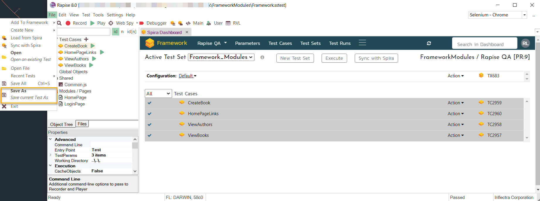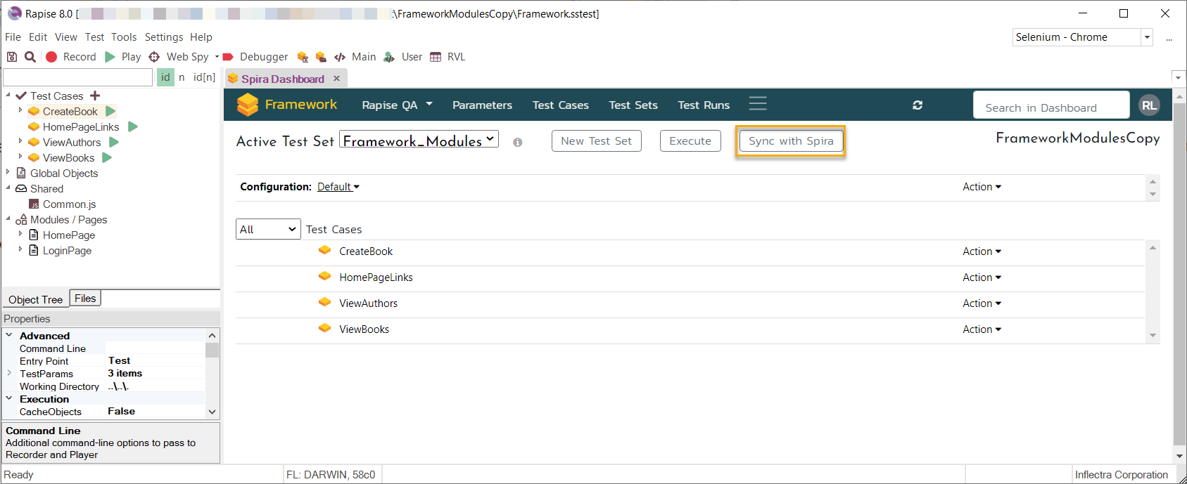 To link the copied framework with SpiraTest, you can easily save it by clicking the Sync with Spira button. This action establishes the connection between the duplicated framework and SpiraTest, ensuring that all the relevant data, including parameters, configurations, and test sets, is synchronized and saved within SpiraTest.
