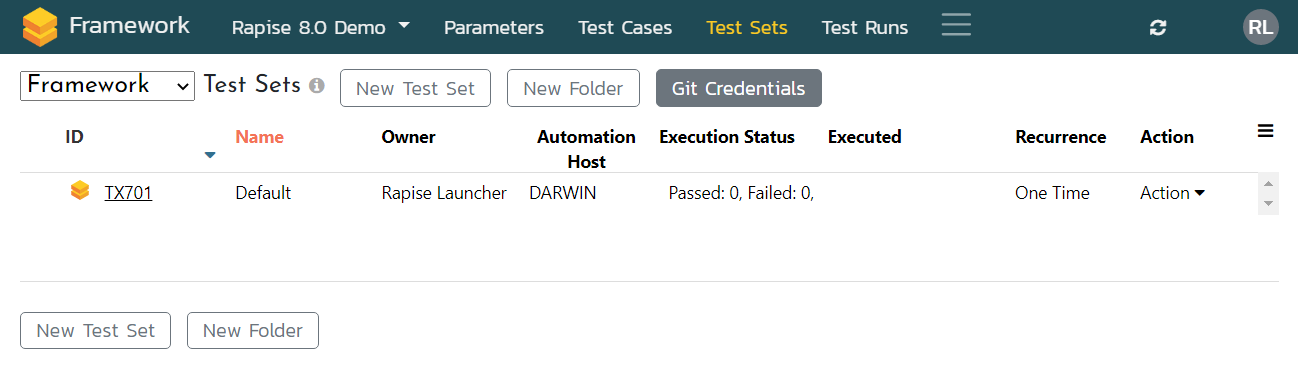 You are now ready to run the test set via RapiseLauncher. Run it from the Test Sets page using Actions menu: