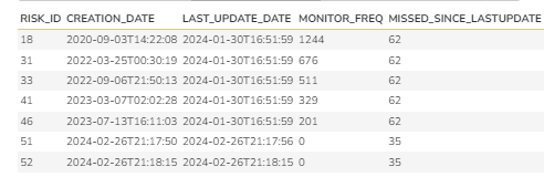 - The MONITOR_FREQ is the difference between the date the risk was first created till the time it was last updated.