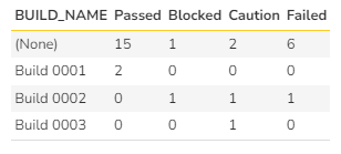 COUNT(TR.EXECUTION_STATUS_NAME) as Passed, 0 as Blocked, 0 as Caution, 0 as Failed