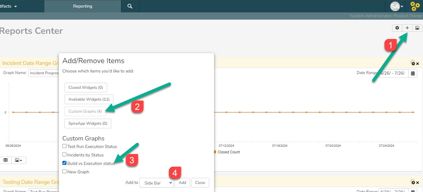 Custom graph can be added manually to Report Center dashboard: