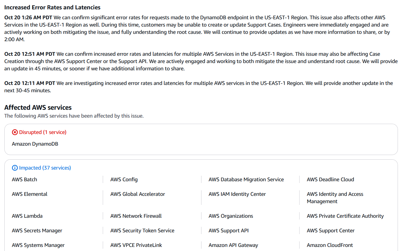 However we do rely on Amazon DynamoDB for some of the Inflectra.ai functionality, and that may be temporarily unavailable due to the outage.