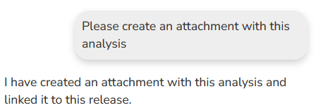 This option is best when you simply want to document the analysis and keep it as record for audit purposes. Clicking the Create attachment option will generate a new document, attached to the release: