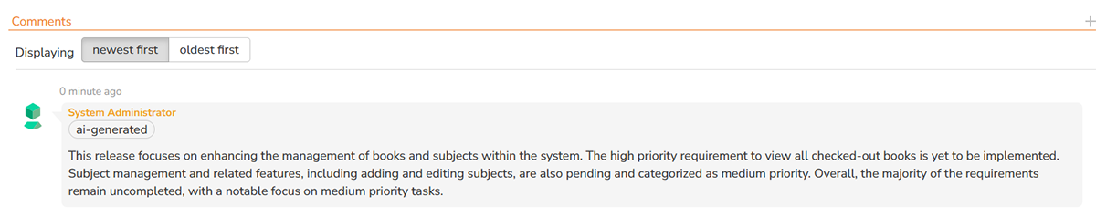Note that we tag the comment with ai-generated to ensure users know it was created by Inflectra.ai, and not a human.