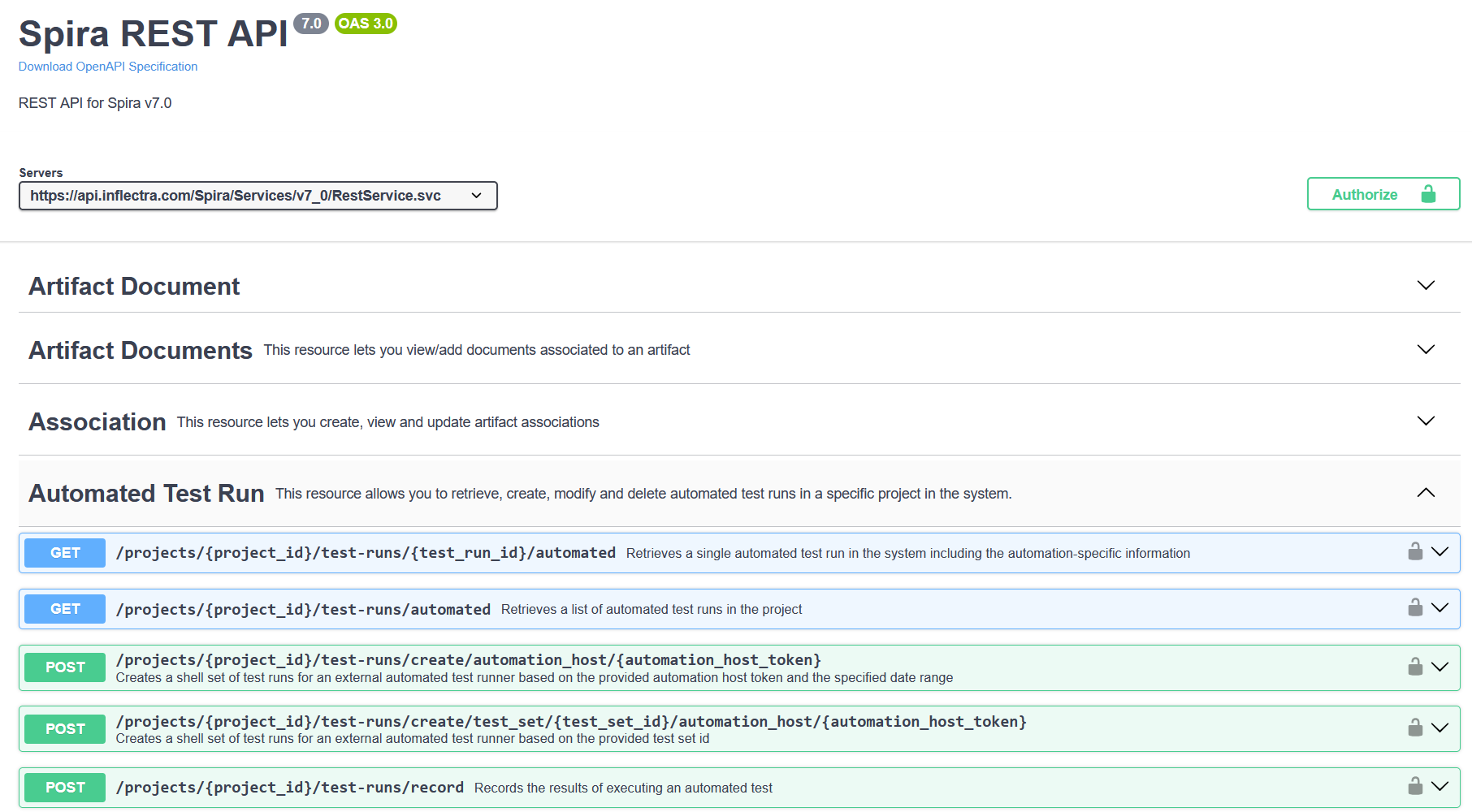 In your own instance you can use the Authorize section to specify the necessary authentication information to access your Spira instance: