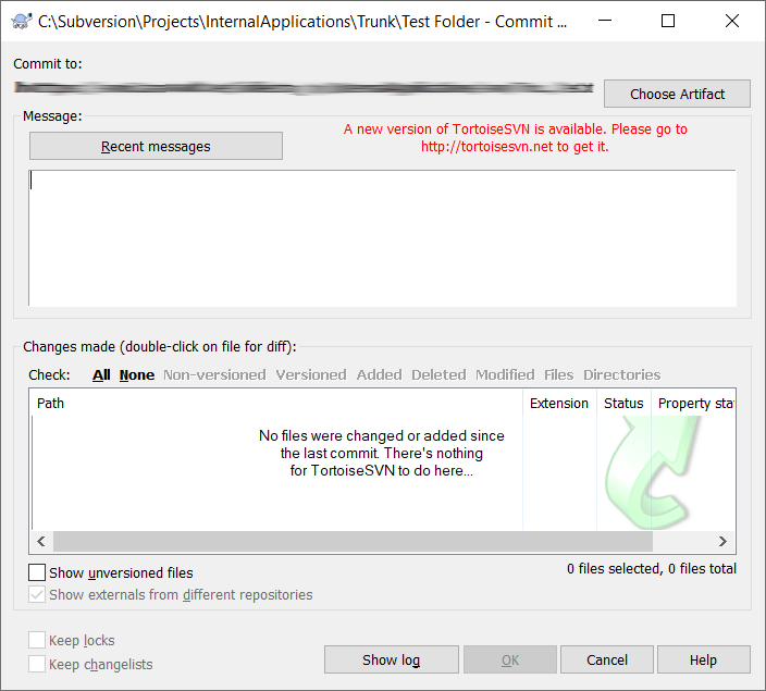 For example, you might be fixing a bug, implementing a feature, or completing a task associated with a requirement. When you choose the menu option in Tortoise to commit the change, it displays the following dialog box: