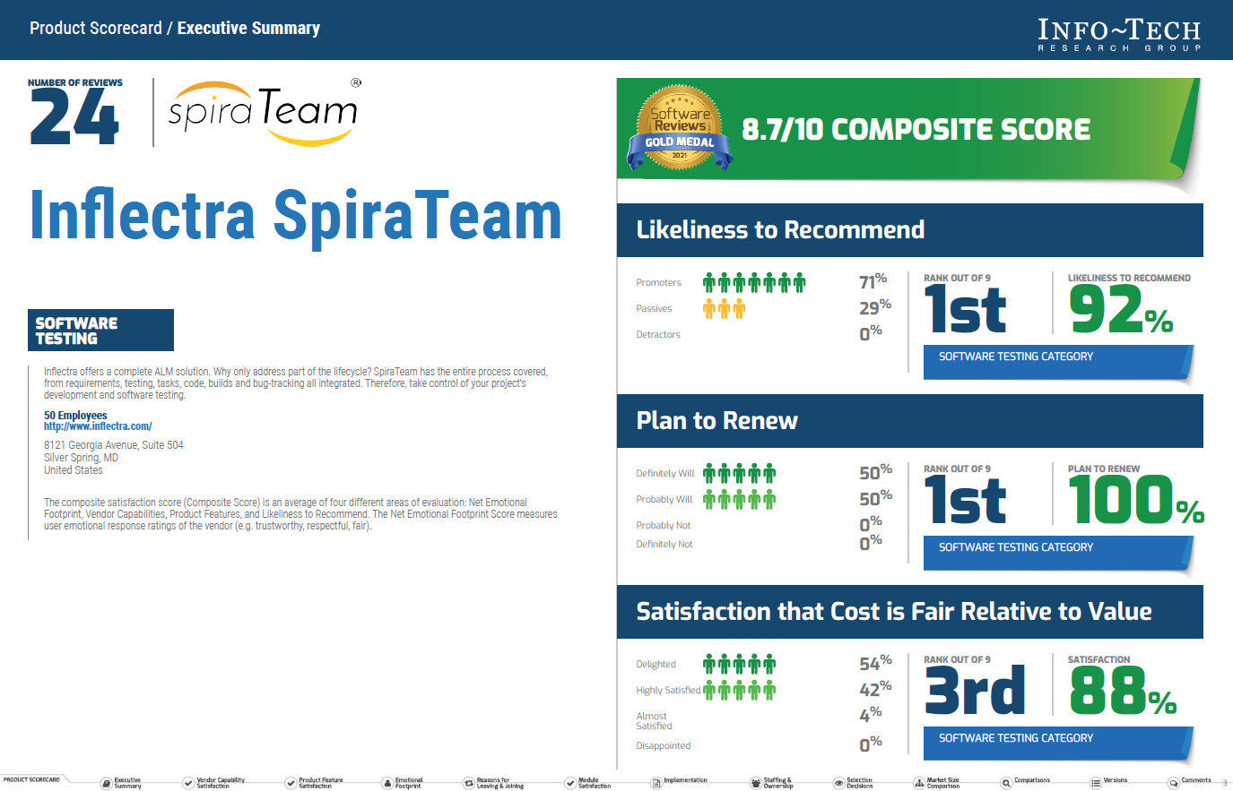With its scalable, cloud-based infrastructure and real-time collaboration features, Inflectra offers a flexible solution that aligns agile processes with business objectives. A robust customer feedback and a clear roadmap underscore its efficiency, scalability, and innovation, positioning Inflectra as a leader in the SPARK Matrix: Enterprise Agile Planning, 2024.