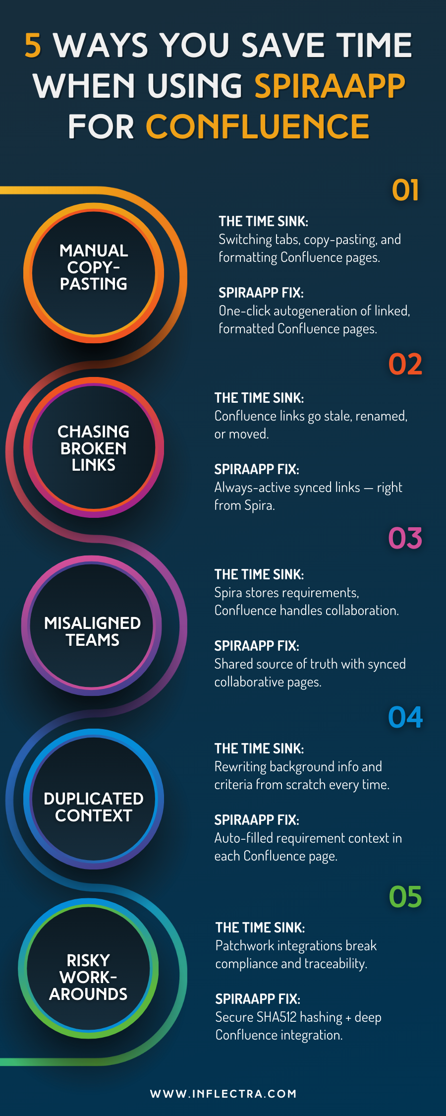 Don’t let friction between Spira and Confluence slow down your teams. SpiraApp automates the grunt work, so you can focus on what matters.