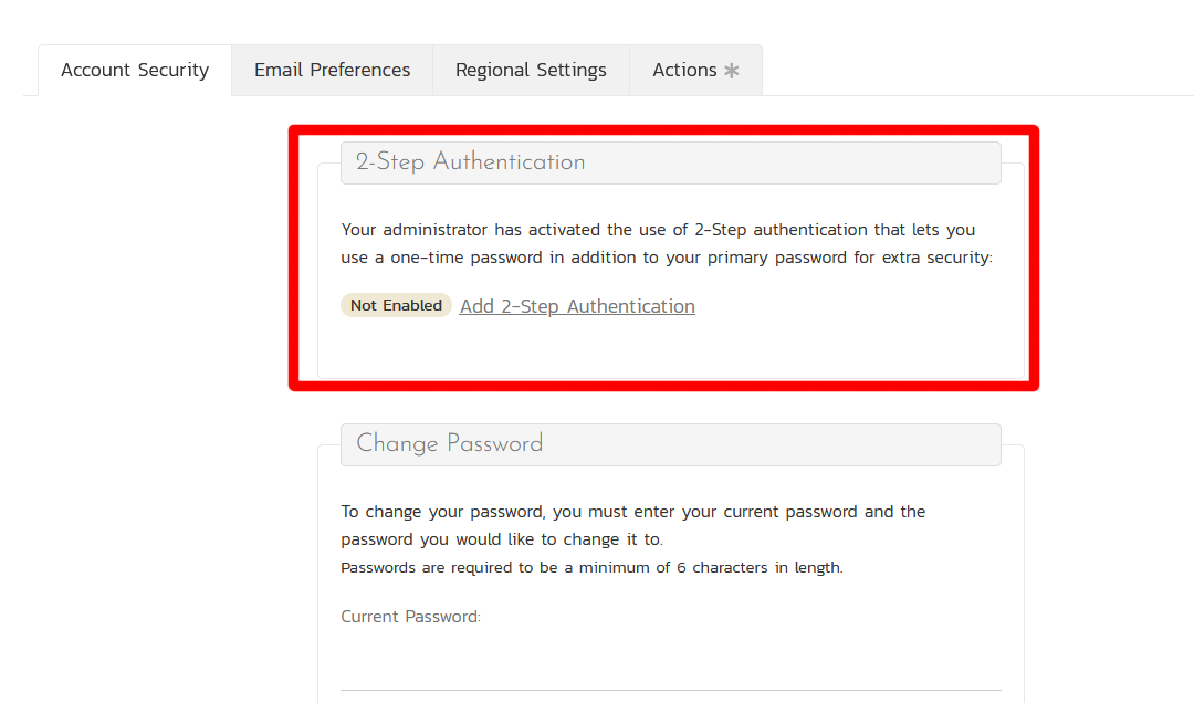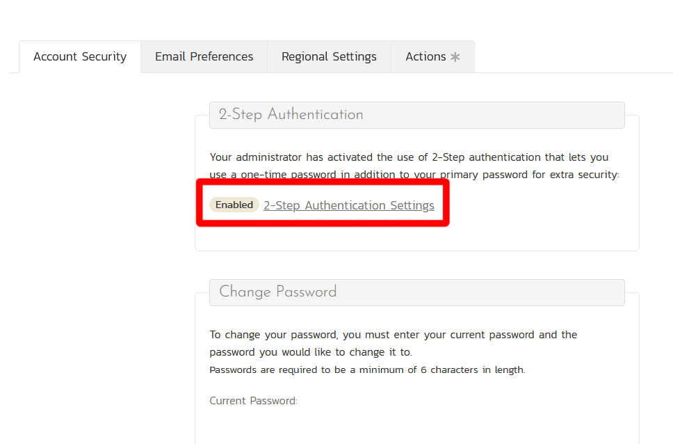 If you want to change or remove the MFA information, you can use the 2-Step Authentication Settings link on the Customer Area Page: