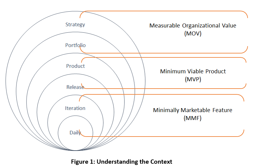 The fundamental goal of the four agile ceremonies is that they collectively tell a story! This story is about delivering value to the customer. This value increment is called the Minimally Marketable Feature (MMF) and must be integrated with the benefits for the performing organization. The resulting benefit management sustained through the value stream mapping is part of the Minimum Viable Product (MVP) and must be aligned to the product roadmap delivered in one or more releases.