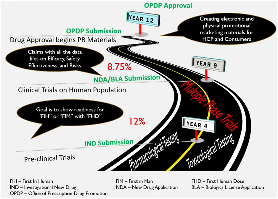 - When the drug does not meet the required criteria, a decision is made to terminate the continuous research or take a different path aligned with the business strategy (MOV).