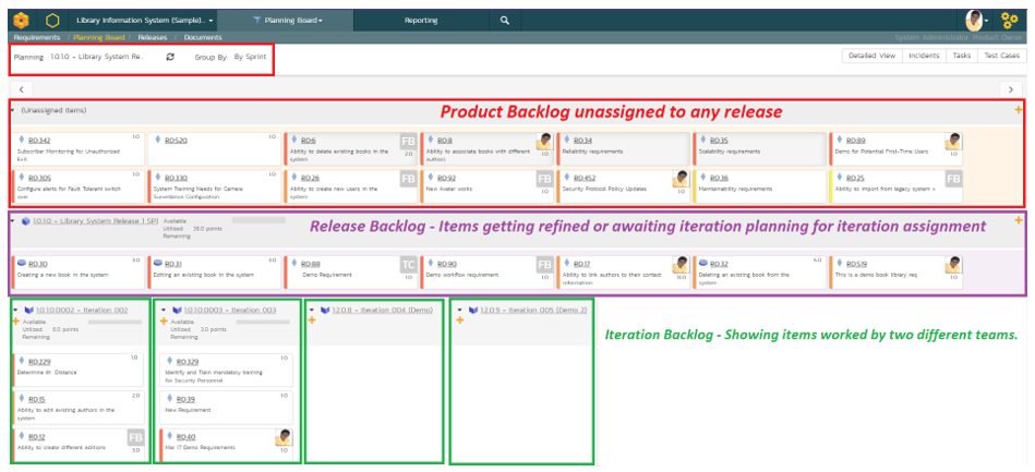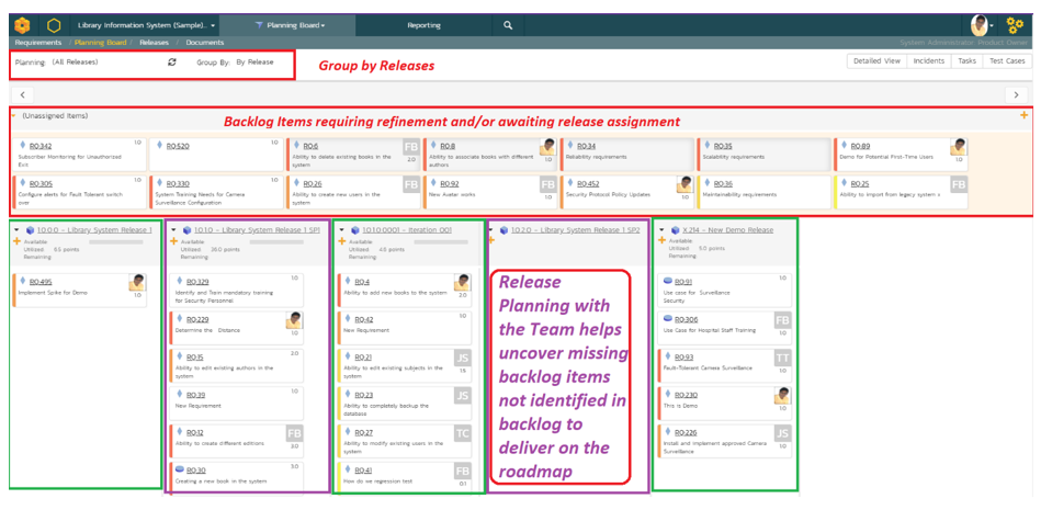 While refining the backlog to a ready state, such as from item 4, Spira does not require these items to be associated with any release or iteration. This approach ensures that the delivery team can take part in the release and iteration planning to ensure that they can commit to the work in the upcoming iteration. For instance, a product owner may envision a particular feature to be delivered in a specific release that itself consists of many smaller iterations.