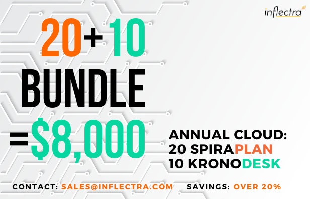 However we had customers that were looking for larger numbers of licenses and also were interested in our new SpiraPlan enterprise agile planning solution, especially with its new program and risk management features. Also customers often want to extend the reach of Spira with our KronoDesk customer support solution, so we recently added two more bundles to our lineup: