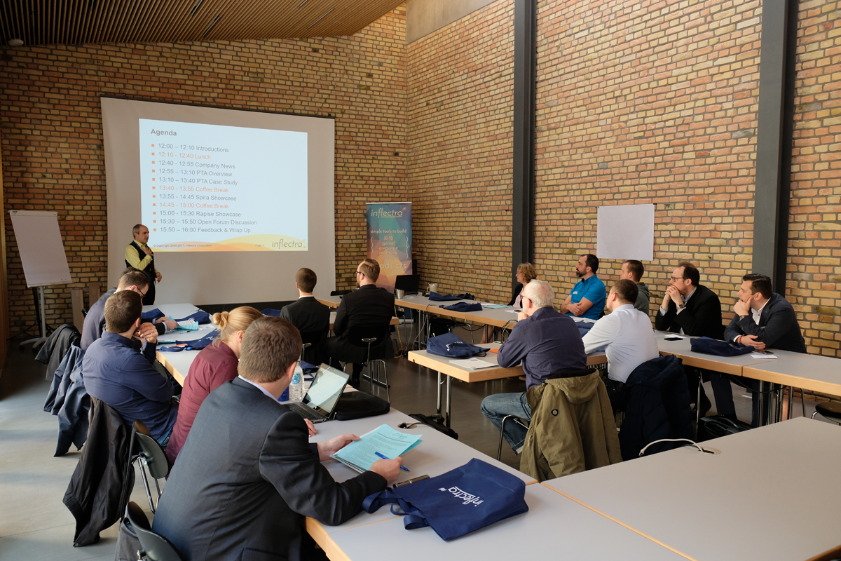 We had attendees come from across Germany and the Czech republic to attend the event, from Mannheim, Berlin, Frankfurt, Stuffgart, Cologne, and Prague. To thank our customers for supporting our event and for their long-term commitment to Inflectra and our ecosystem, we had a nice selection of Inflectra and PTA goodies to give away: