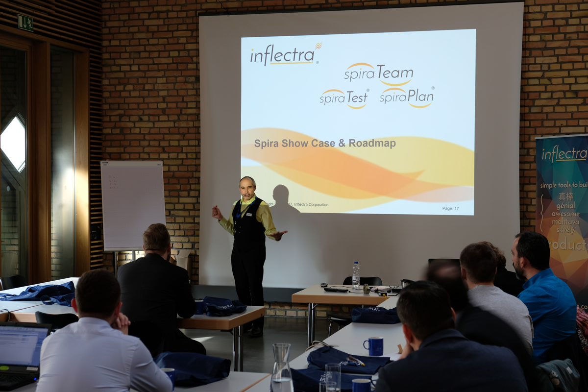 To kick off the event, Adam Sandman from Inflectra welcomed the attendees and explained the current plans and initiatives happening at Inflectra, including the re-branding of the company and products, as well as our new training and certification initiative.
