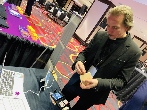In a true tester fashion, we had our booth visitors test our most popular swag item - a wireless IPhone charger 👇: