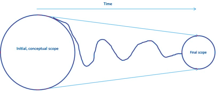 Occasionally, this challenge may further be passed from the business team to the technology team where the requirements further need to be assessed for technical plausibility within the constraints of human capital knowledge, budget limitations, security and compliance considerations being some of them. This scope grope may further be experienced by delay tactics by execution team members and the agile approaches to time-boxed delivery may be easily be used to consider spikes as a limited experiment.