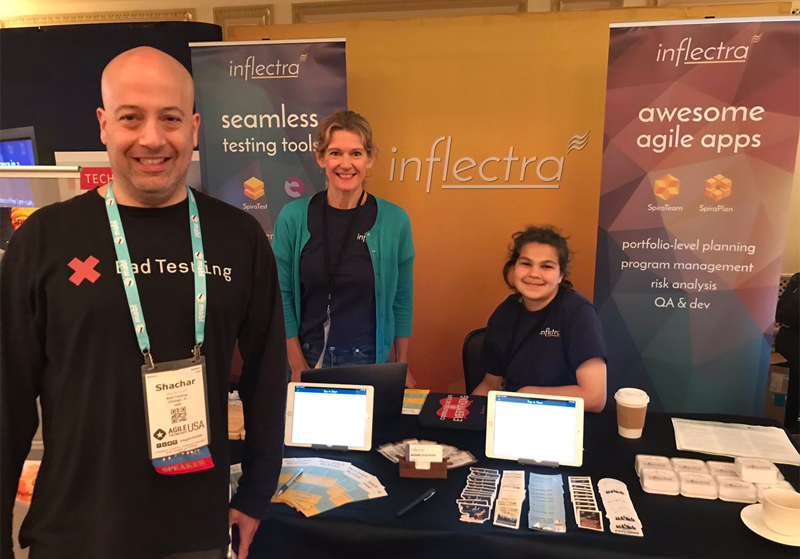 Bringing our lavish selection of swag and world-famous tech themed stickers, #TeamInflectra spent the first day setting up the Inflectra exhibition booth, replete with Bluetooth headphones, wireless phone chargers, and lots of useful whitepapers and brochures to entertain and educate. Thanks to everyone who stopped by to learn more about SpiraTest, Rapise, and SpiraPlan.