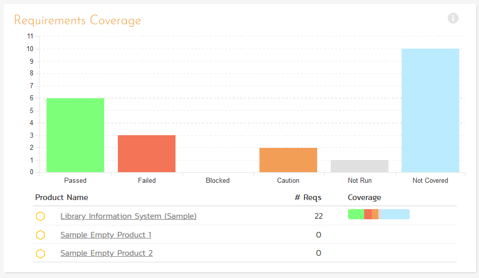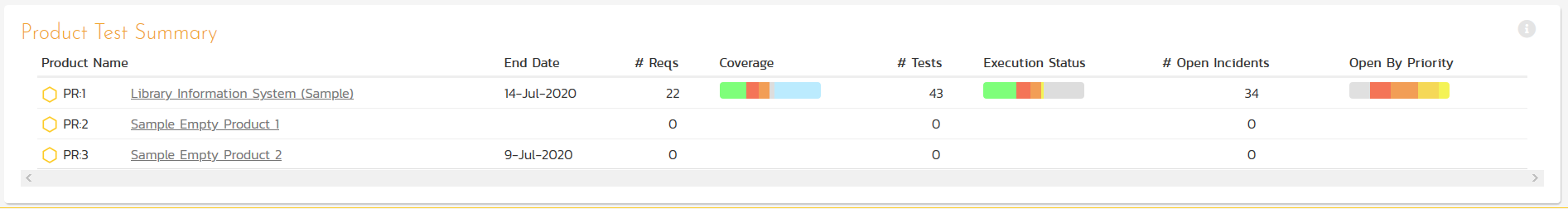 This widget was inspired by meetings with several of our key customers. It displays the key testing and quality information for each product in a program: