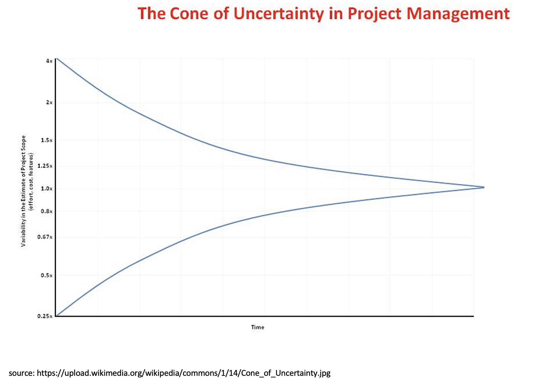 It is self-evident that the estimate we give for an item at the start of the Sprint will not be as accurate as the estimate for the same item half-way through the sprint. It is also obvious that estimates for more longer-term events, such as release planning or product roadmaps, will have an even greater margin of error.