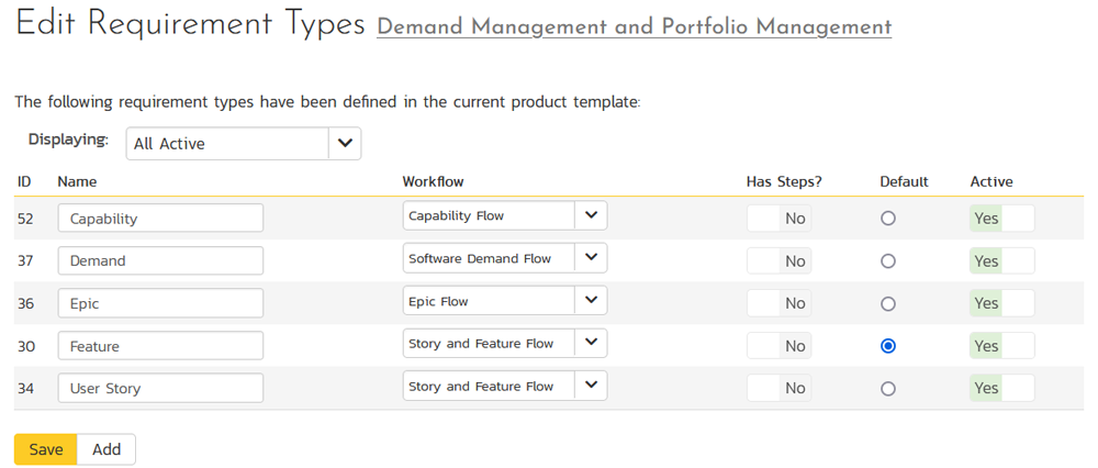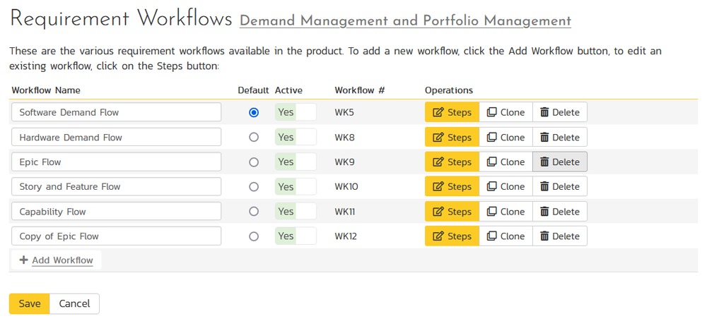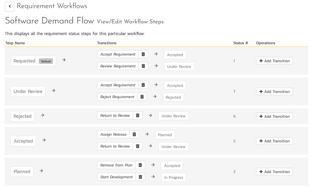 The last step of configuring the demand management product in SpiraPlan is to customize and configure the workflows for the different types of new product request that you are supporting: