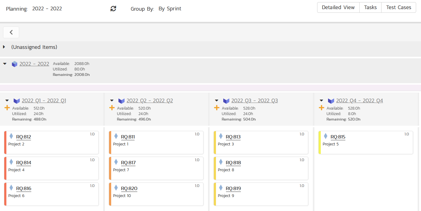 Once you have ranked and prioritized the incoming demands, you can then use the release view of the planning board to assign the applications from the portfolio backlog into the different quarters. This lets you plan the prioritizes for each of the upcoming quarters in the current (and future) investment years.
