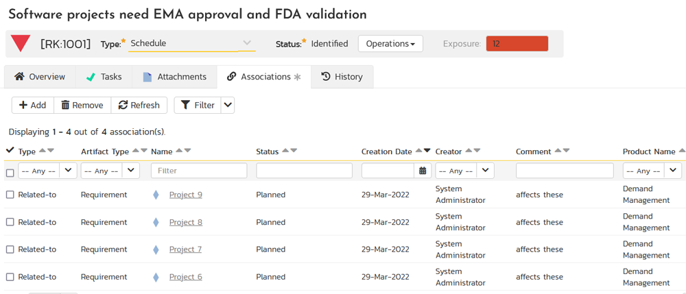 In SpiraPlan, you can easily create a risk register and link it to the different new product requests: