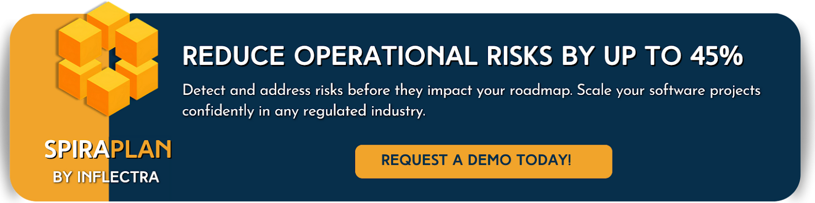As we mentioned earlier, templates are a great starting point but can only carry you so far — especially for a constantly changing area like risk management. While these documents might suffice for smaller teams in lenient sectors, most modern companies should consider investing in (or upgrading) their risk management system. SpiraPlan is a cutting-edge platform for enterprises looking to enhance their risk management, portfolio management, and overall SDLC management. It also comes with our powerful generative intelligence engine, Inflectra.ai, which seamlessly scales for large teams by automating: