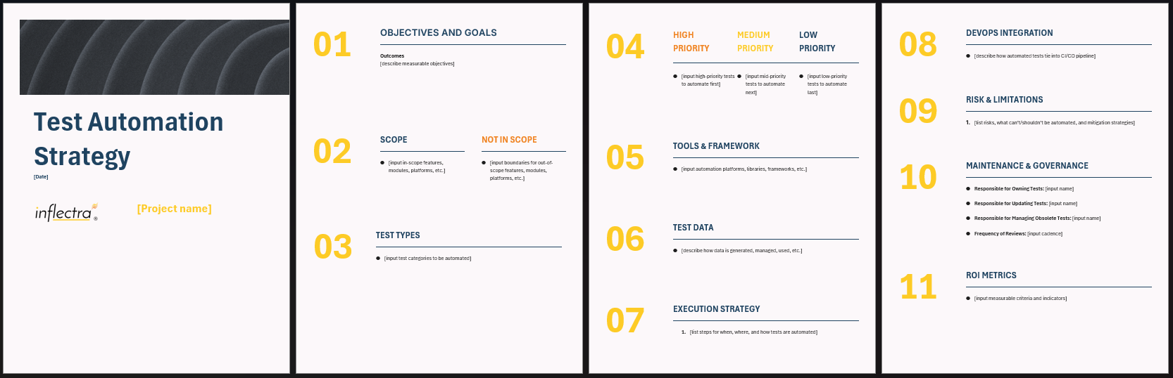 To help with all of this, we’ve created a free downloadable template to serve as a starting point for your next test automation strategy document: