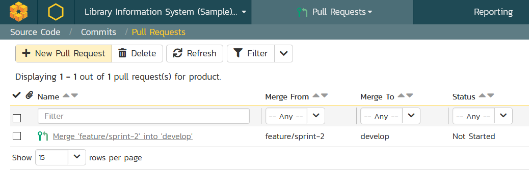 SpiraPlan lets you manage your software development activities and workflows with ease. You can create pull requests (also known as merge requests) to track code branches ready for review. Using the tracking and commenting features, developers can collaboratively review the code and approve the merge into the main development branches.