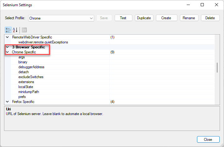 Since we're using Selenium Chrome in this KB, corresponding setting opens up. Scroll a little down while you'll find a Browser specific/Chrome specific section: