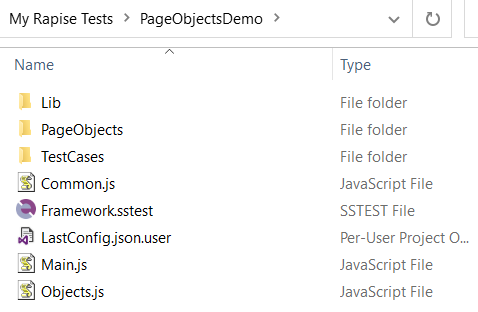 Let's see how to use Rapise, Git and Spira together. We will start with a testing framework created in another KB article, click here to download, then unzip the file. You will have the following files on disk: