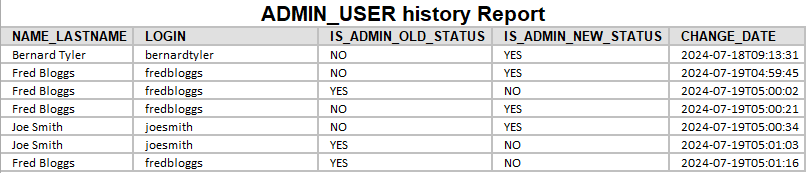 <table class="DataGrid"><tr><th>NAME_LASTNAME</th><th>LOGIN</th><th>IS_ADMIN_OLD_STATUS</th><th>IS_ADMIN_NEW_STATUS</th><th>CHANGE_DATE</th></tr>