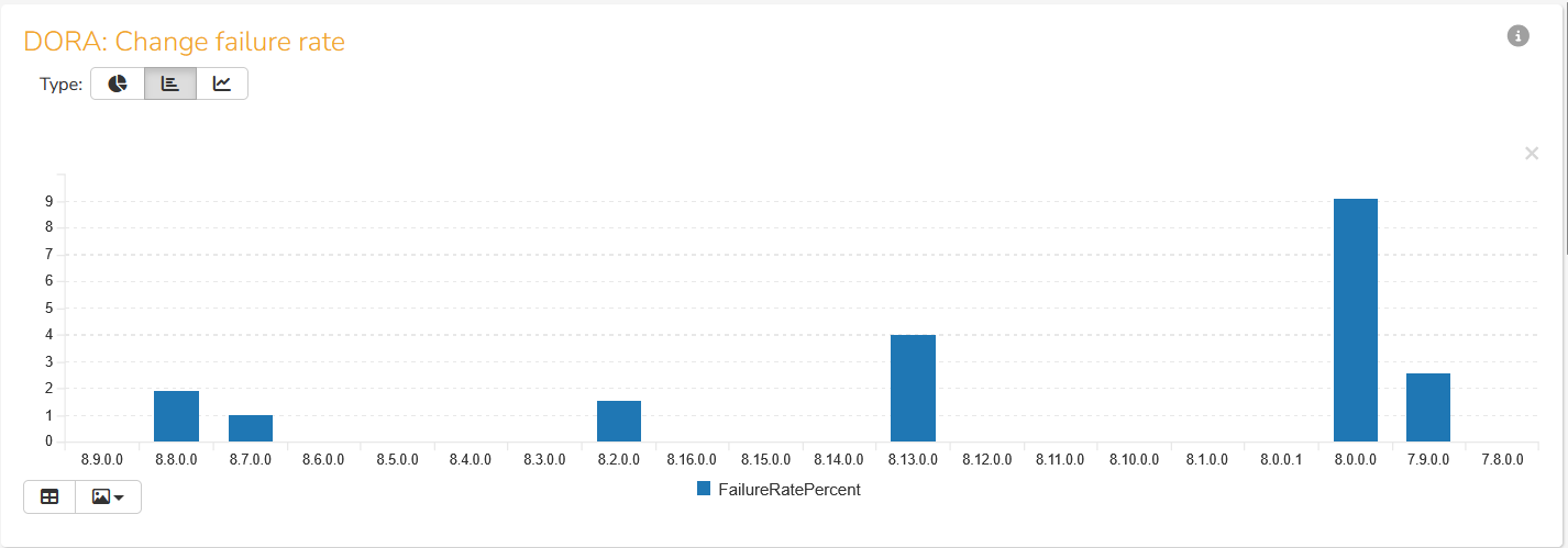 Since we want to look at our productivity improvement over time, we group the results release and then count the failure rate by release.