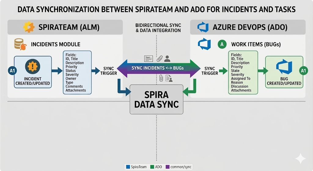 The integration between SpiraTeam and Azure DevOps is powered by the Spira Data Sync service . This integration ensures that the business-side triage performed in SpiraTeam is automatically translated into actionable work items for the development team in ADO, maintaining a bidirectional link throughout the lifecycle.
