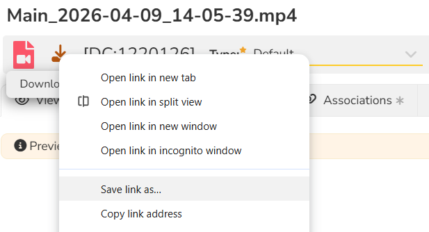 To view the recording, click on the file link. Another tab will open.